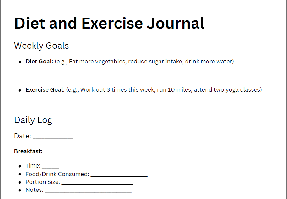 Diet and Exercise Journal